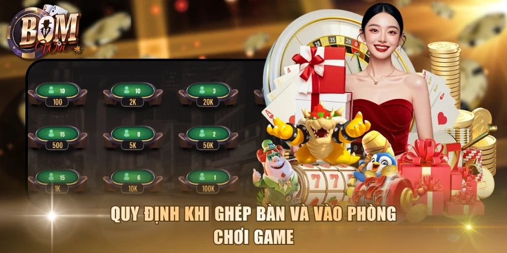 Nếu người dùng muốn ghép bàn với người lạ thì chỉ cần nhấn nút “Chơi ngay” hoặc nhấn vào 1 phòng bất kỳ đang sáng đèn. Hệ thống tự động tìm bàn chơi phù hợp trong vòng 5 – 20 giây. Trường hợp người dùng đi theo nhóm, muốn tạo bàn game bài Bomwin riêng thì nhấn nút “Tạo bàn”.